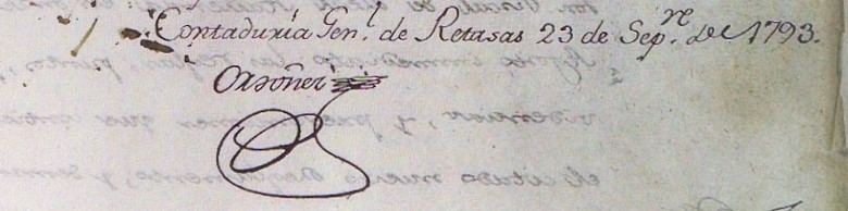 Previous Image Next Image ordonez signature trib 3 exp 2 f 91 Signature of D. Juan Ordoñez de Seixas, a bureaucrat involved in a case treated in this article manuscript. Archivo General de la Nación, Tributos vol. 3, exp. 2, f. 91. Photograph by the author.